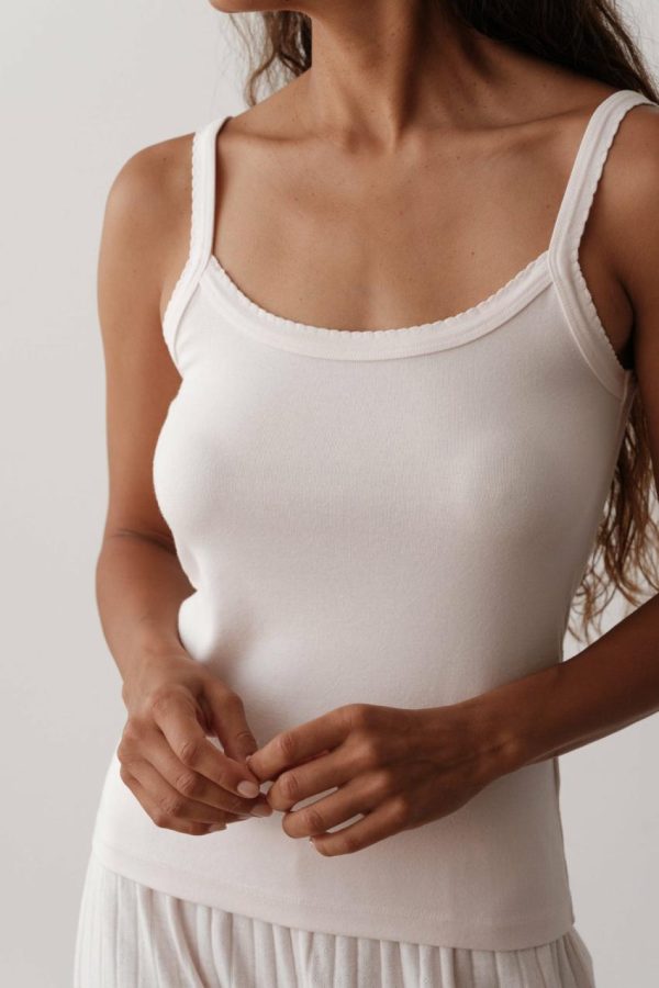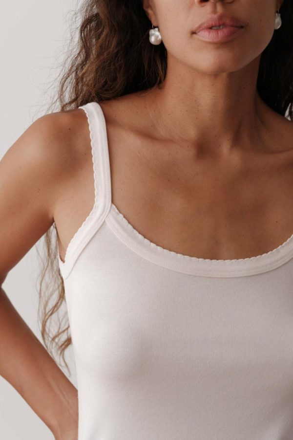 The Baby Rib Scallop Tank features our premium ultra-soft fabric with a modern slightly cropped silhouette and delicate scalloped detailing along the neckline & straps for effortless style.