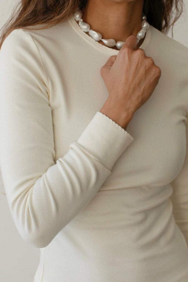 The Baby Rib Scallop Long Sleeve features our premium ultra-soft fabric that feels incredibly luxurious against your skin—this is one top you’ll want to wear every day. Designed with a timeless crewneck silhouette, flattering slim fit, and elegant scalloped detailing along the neckline and cuffs for a sophisticated finish.