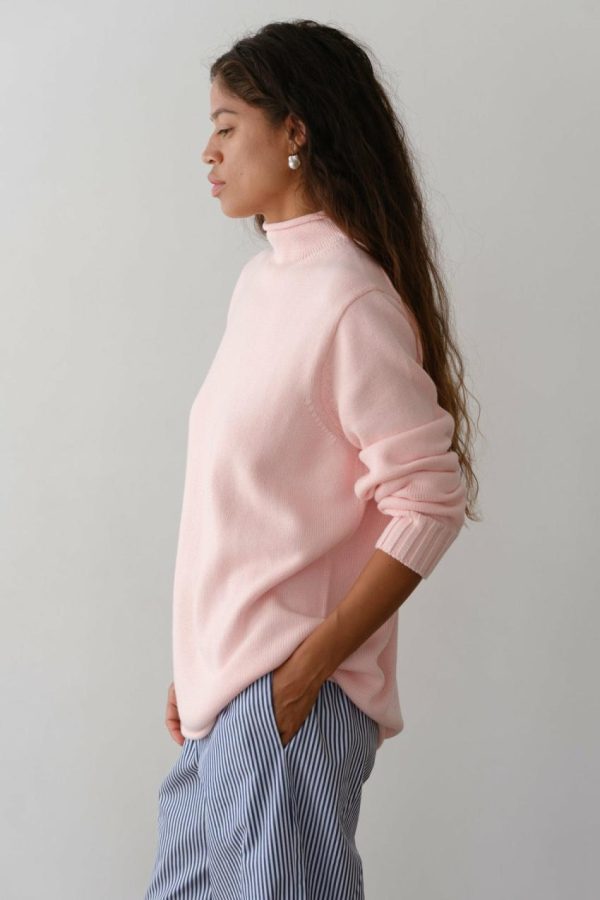 Please note, the roll neck on this sweater may feel snug initially but will loosen to a comfortable fit with wear.