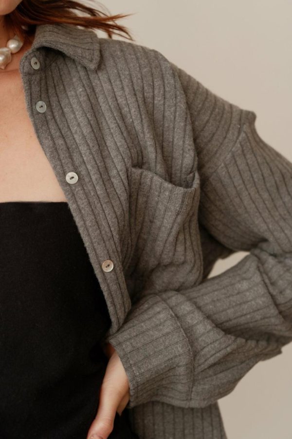 Experience ultimate comfort with our premium sweater rib fabric, featuring elegant mother of pearl buttons, a perfect true-to-size fit, beautiful ribbed texture, and a practical left chest pocket.