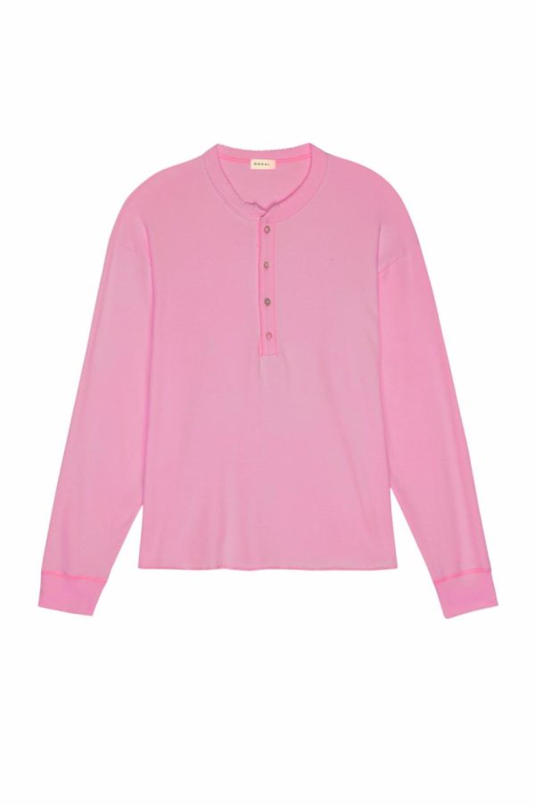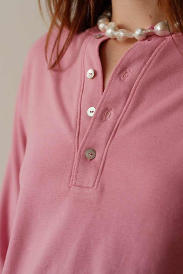 The Scallop Henley features our premium baby rib fabric with a delicate scallop neckline and genuine mother of pearl button details for effortless sophistication.