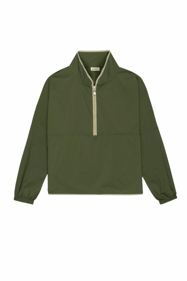 nylon 1/2 zip pullover with front pocket, rectangular freshwater pearl, & contrast binding