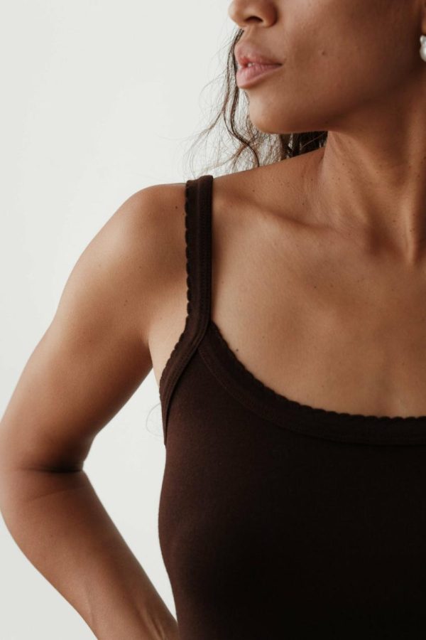 The Baby Rib Scallop Tank is crafted with our softest fabric yet, featuring a slightly cropped fit and scalloped edges on the neckline & straps.