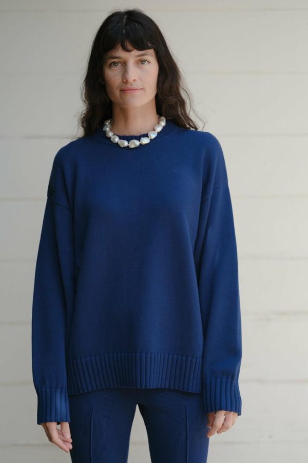 The Cotton Knit Crewneck is crafted with 100% Organic Cotton, featuring a slightly oversized fit and ribbed edges.
