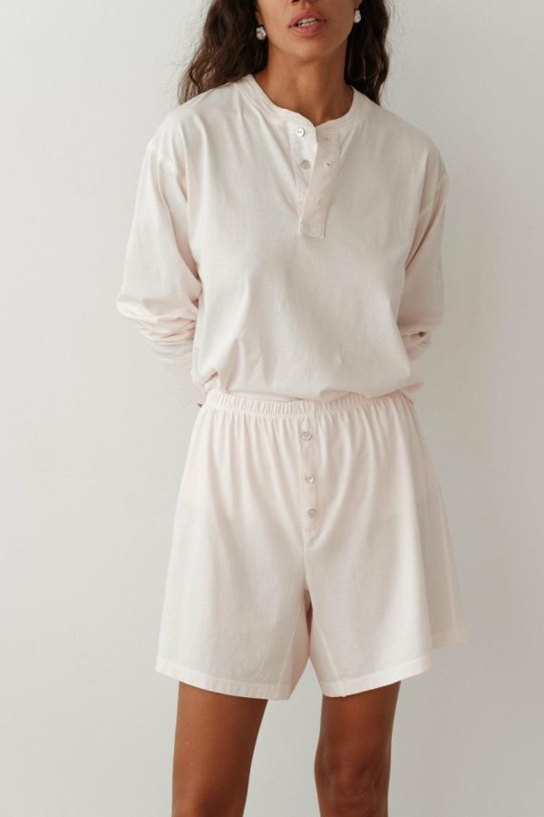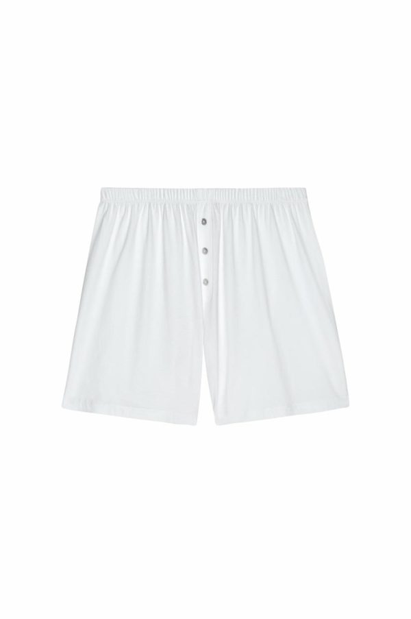 The Jersey Boxer is crafted from ultra-soft, mid-weight supima cotton jersey. Featuring a relaxed fit, mother of pearl buttons, and menswear inspired back seam detail.