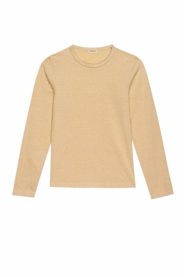 The Jersey Stripe Long Sleeve is crafted from 100% recycled materials. It features scalloped detailing on the collar and a relaxed fit.