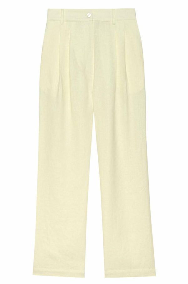 Relaxed yet refined, The Linen Pleated Trouser is crafted from our lightweight linen fabric. Featuring, a wide leg silhouette, side pockets, front pleats, and finished with a mother of pearl button.