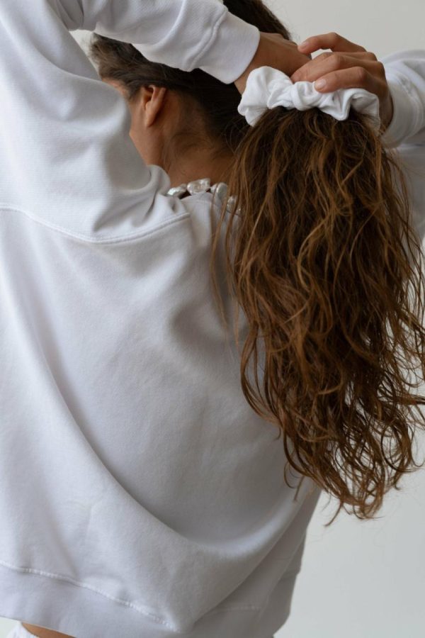 The Pointelle Scrunchie is expertly crafted with 100% Organic Cotton, offering the perfect chic hair or wrist accessory to elevate your everyday style.