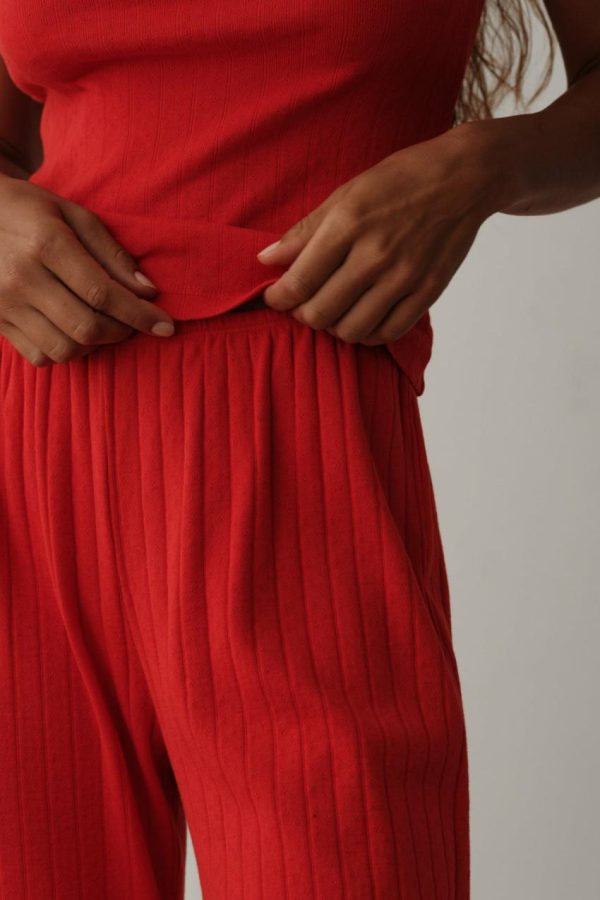 The Pointelle Simple Crop Pant is crafted with 100% Organic Cotton, featuring a cropped fit, wide leg and elastic waist.