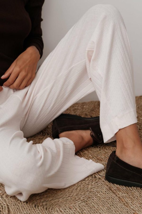 The Pointelle Simple Crop Pant is crafted with 100% Organic Cotton, featuring a cropped fit, wide leg and elastic waist.