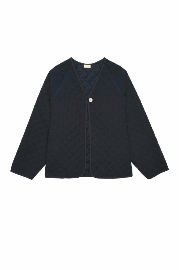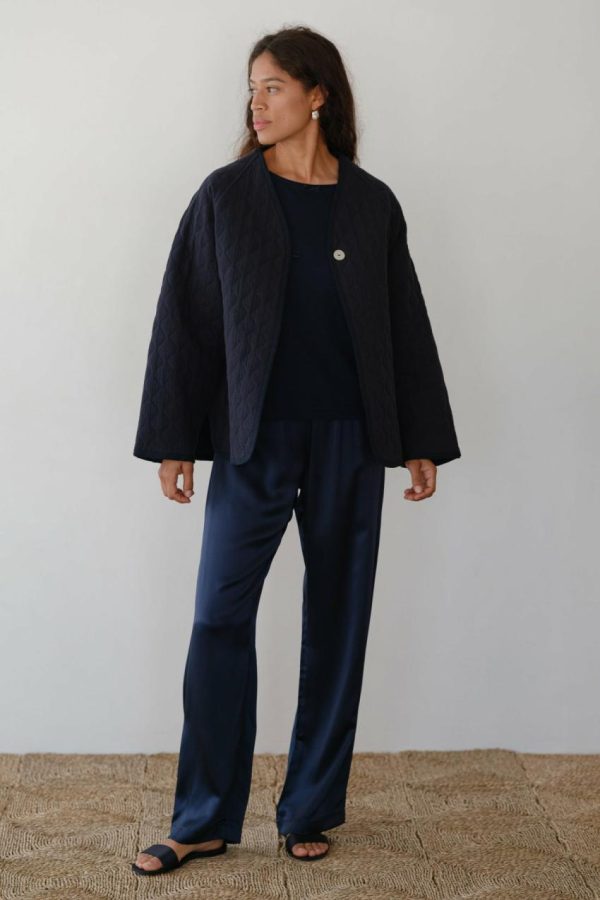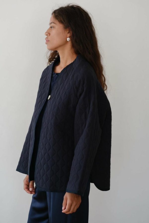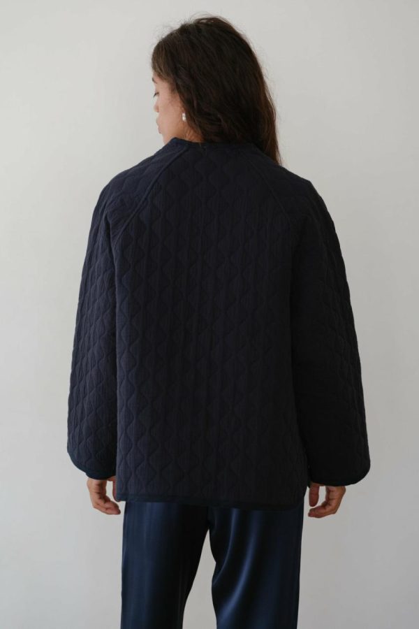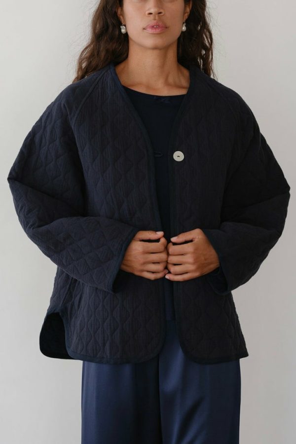 The Quilted Jacket is the ultimate cozy layer, designed with an oversized yet boxy silhouette for effortless dressing. It features a soft quilted texture, mother-of-pearl button closure, and contrast interior lining.