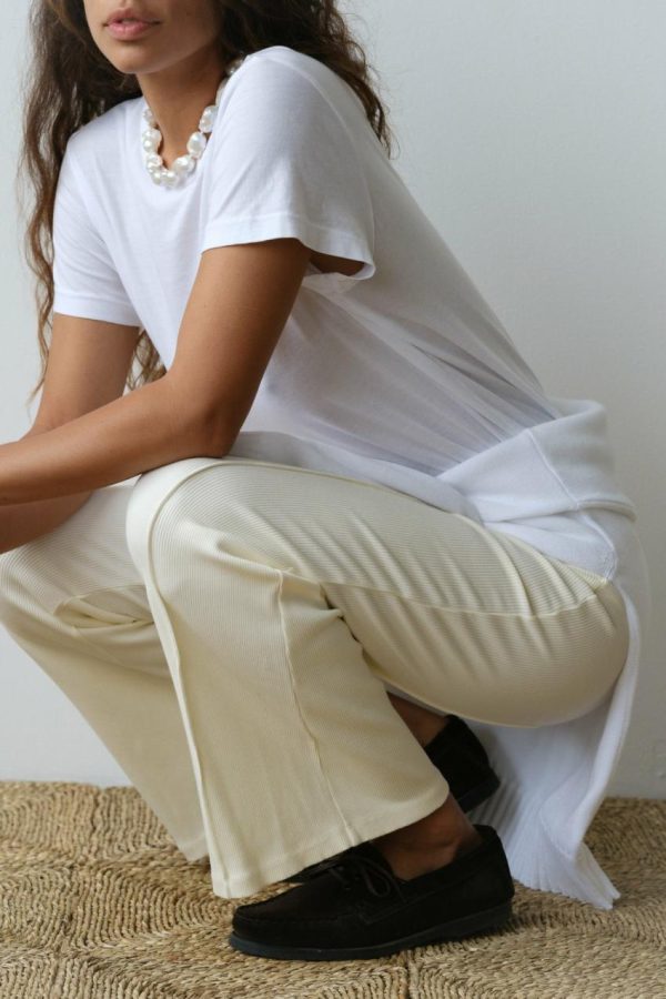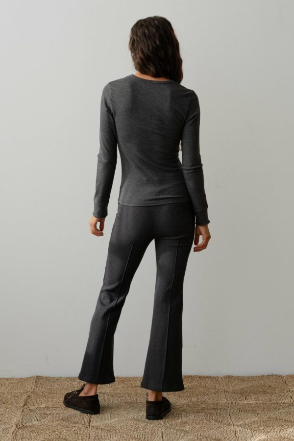 Our #1 best-seller. A fitted, ribbed pant with a classic kick flare, cropped length, and pintuck detail on the front and back. Ultra-flattering, comfortable, and effortlessly cool.