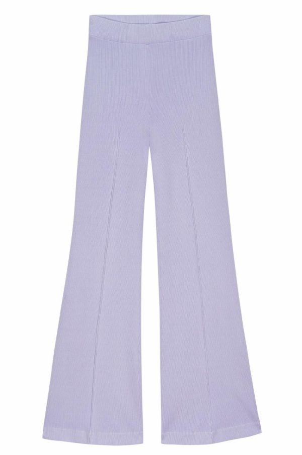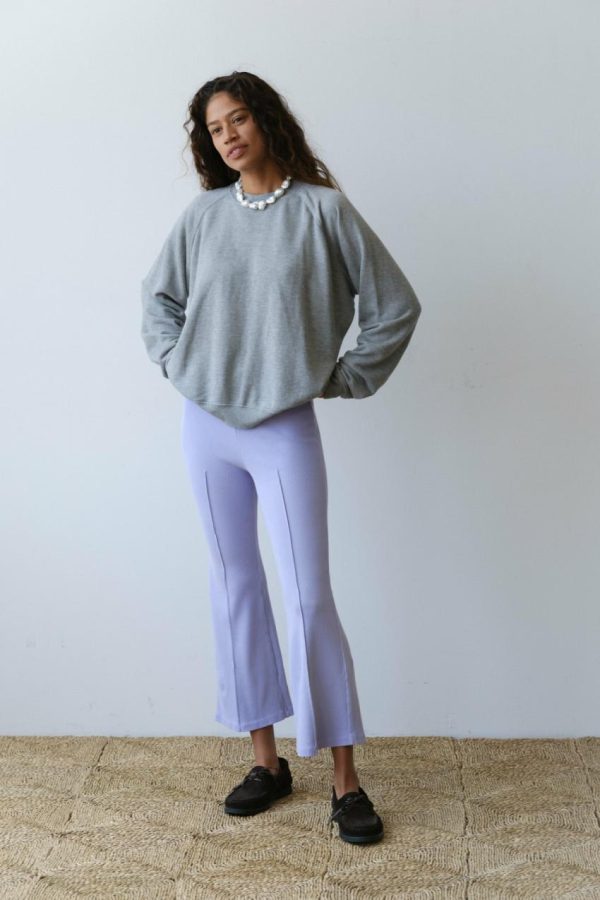 Please note, the inseam on The Rib Kick Flare in Lilac is running short at 26″