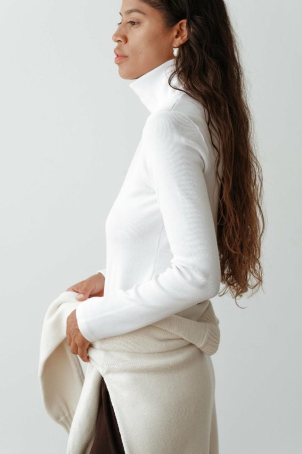 The Rib Turtleneck is crafted from our ultra-flattering and comfortable rib fabric, featuring a relaxed turtleneck, subtle dropped shoulder and