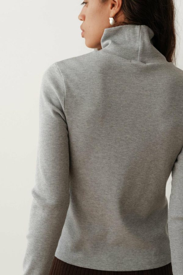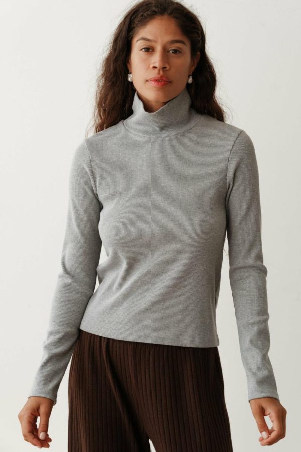 The Rib Turtleneck features our signature ultra-flattering rib fabric that combines exceptional comfort with sophisticated style, showcasing a relaxed turtleneck design, contemporary dropped shoulder silhouette, and