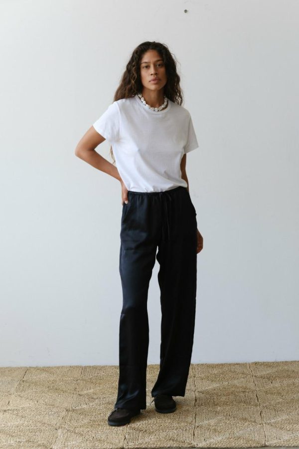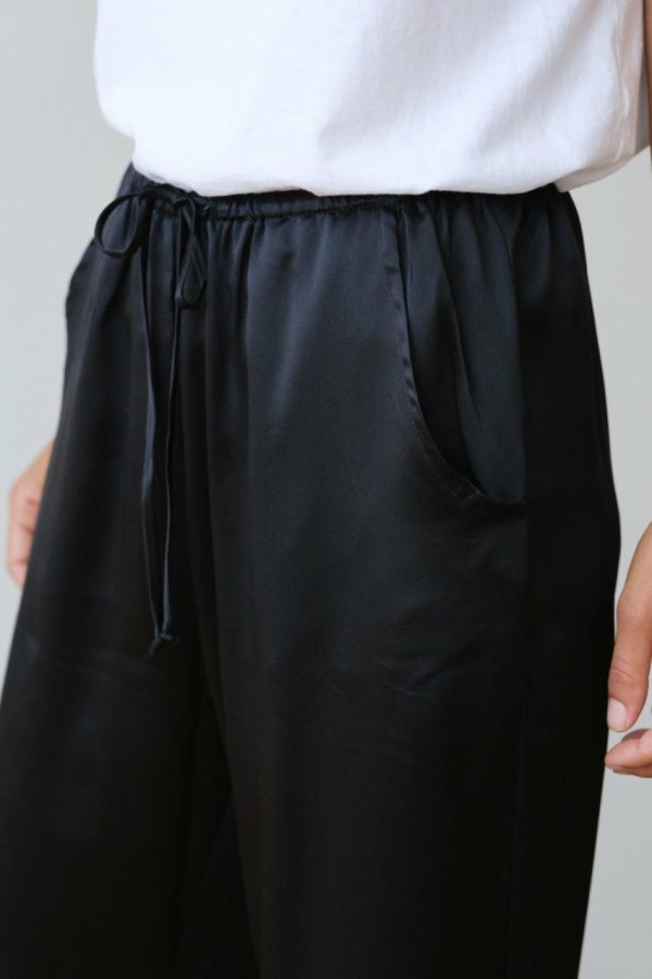 The Silk Drawstring Pant is crafted from our luxe 100% silk charmeuse fabric. Featuring a drawstring waist, pockets, straight-leg, and relaxed fit.