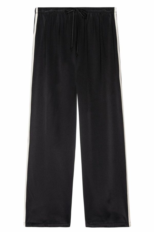 The Silk Stripe Crop Pant is crafted from our luxe 100% Silk fabric. Featuring a drawstring waist, racer stripes,