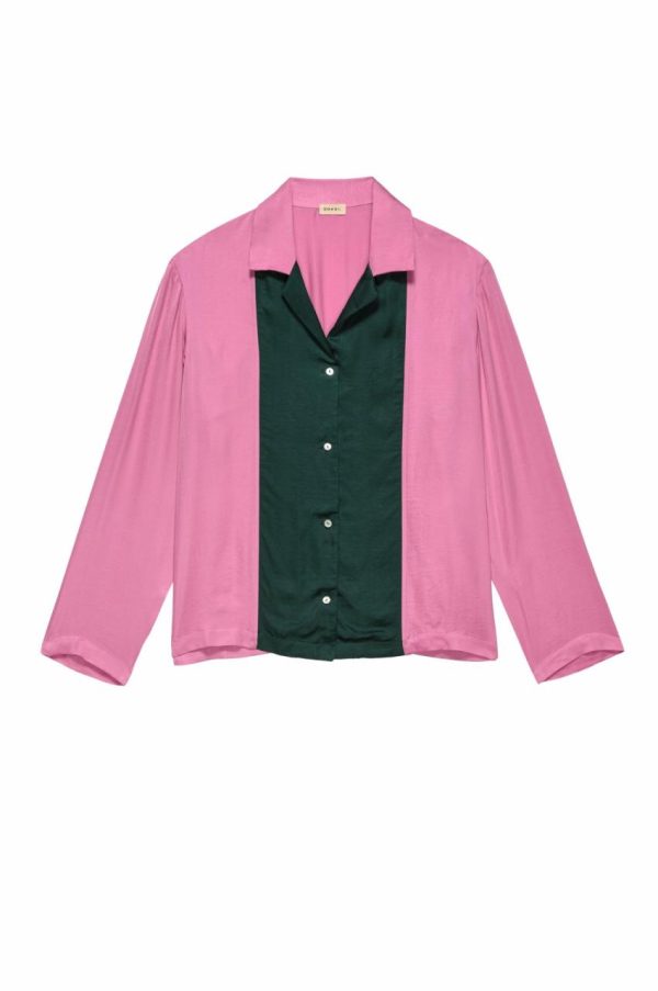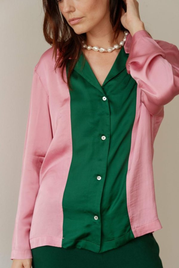Crafted with our best-selling silky fabric, featuring mother of pearl buttons, two-tone detail, and a slightly oversized fit.