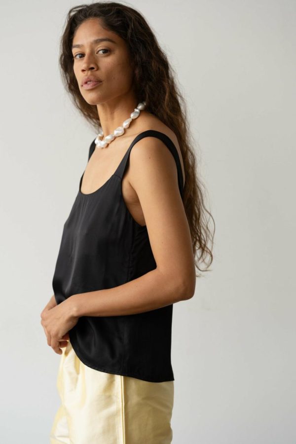 The Silky Cami effortlessly elevates any outfit, featuring a relaxed fit and built-in shelf bra for added comfort and support.