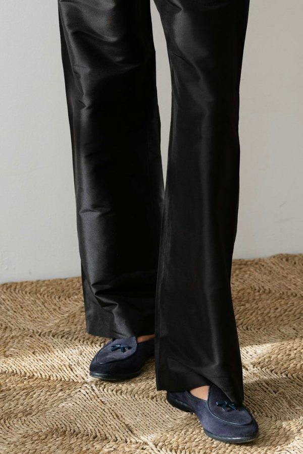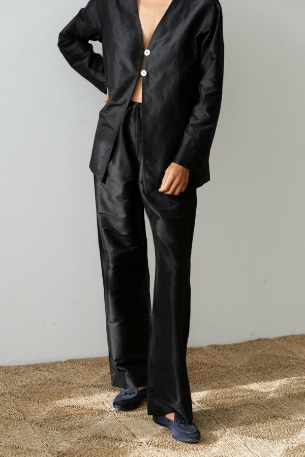 The Taffeta Simple Pant combines effortless style with sophisticated elegance. Expertly crafted from our premium 100% silk taffeta fabric featuring a comfortable elastic waistband and flattering wide leg silhouette.