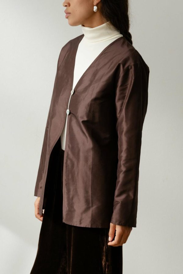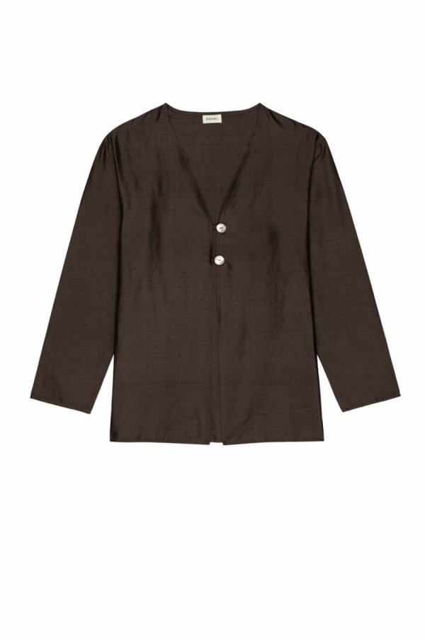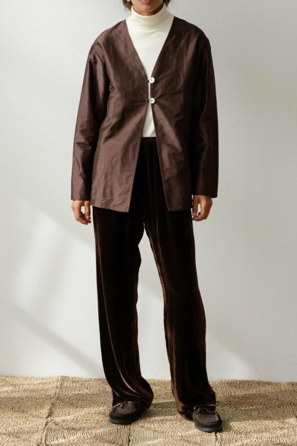 Experience effortless sophistication with our Taffeta Split Top, featuring a beautifully crisp texture and featherlight feel. Expertly crafted from our premium 100% silk taffeta fabric, this top offers a flattering relaxed fit, elegant v-neckline, and exquisite mother of pearl button details.