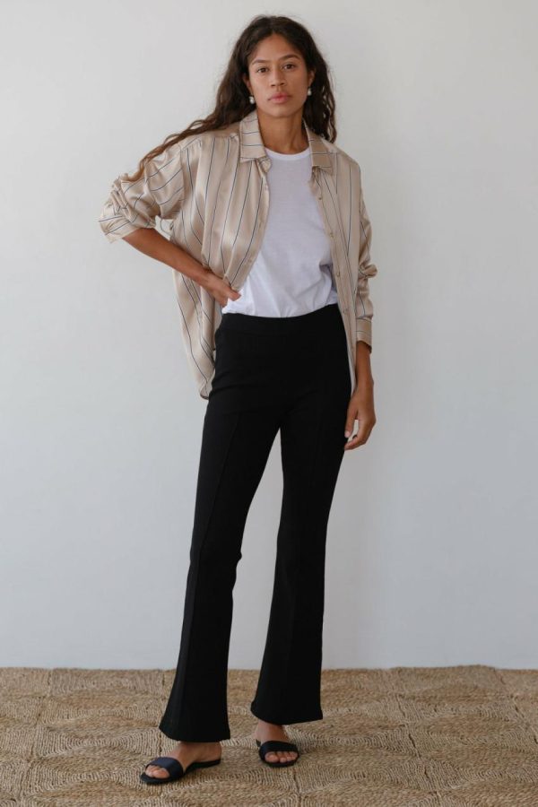 Our #1 best-seller. A fitted, ribbed pant with a classic kick flare, cropped length, and pintuck detail on the front and back. Ultra-flattering, comfortable, and effortlessly cool. The same fit you know and love now in a longer inseam.