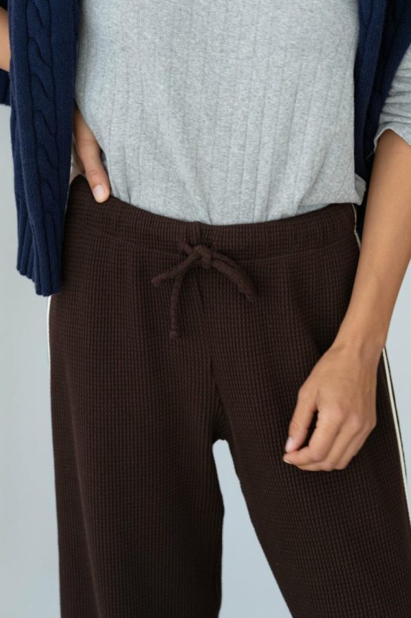 The Thermal Crop Stripe Pant is crafted from soft, breathable thermal. It features a cropped fit, double stripe detail, waffle texture, and an adjustable drawstring waistband