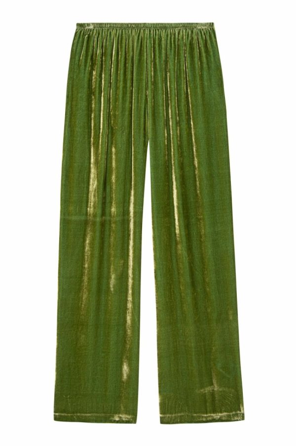 The Velvet Simple Pant combines luxury with comfort. Crafted from luxe velvet, it features a relaxed, wide-leg silhouette and an elastic waistband for an easy, pull-on fit.